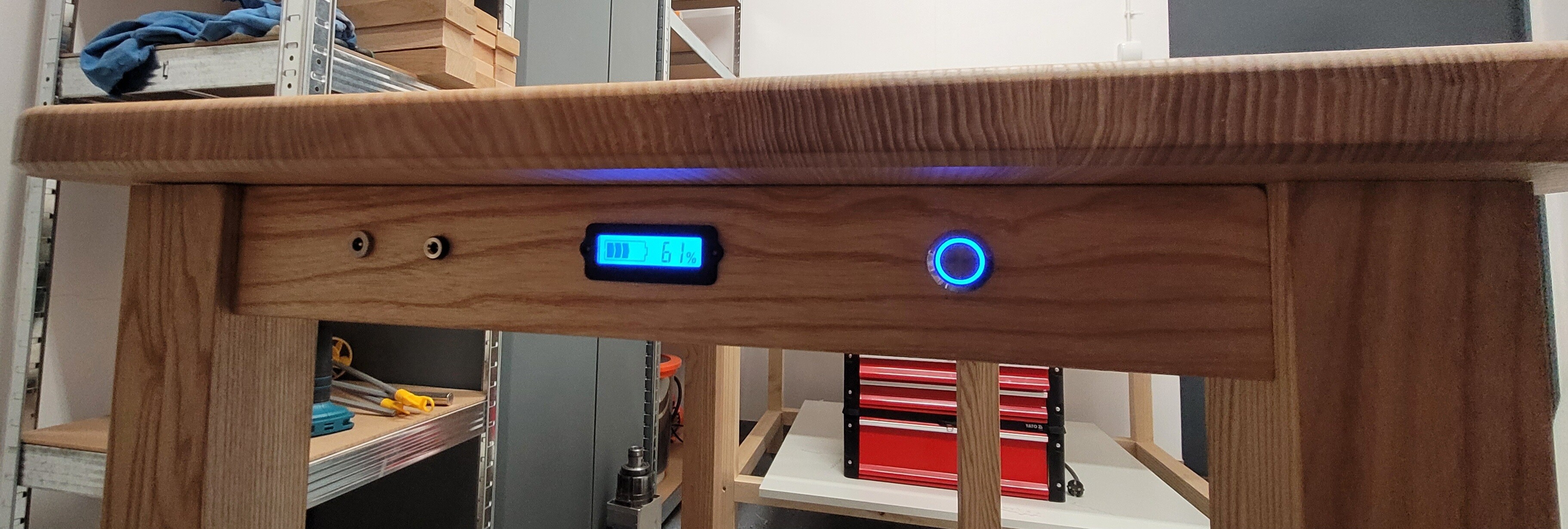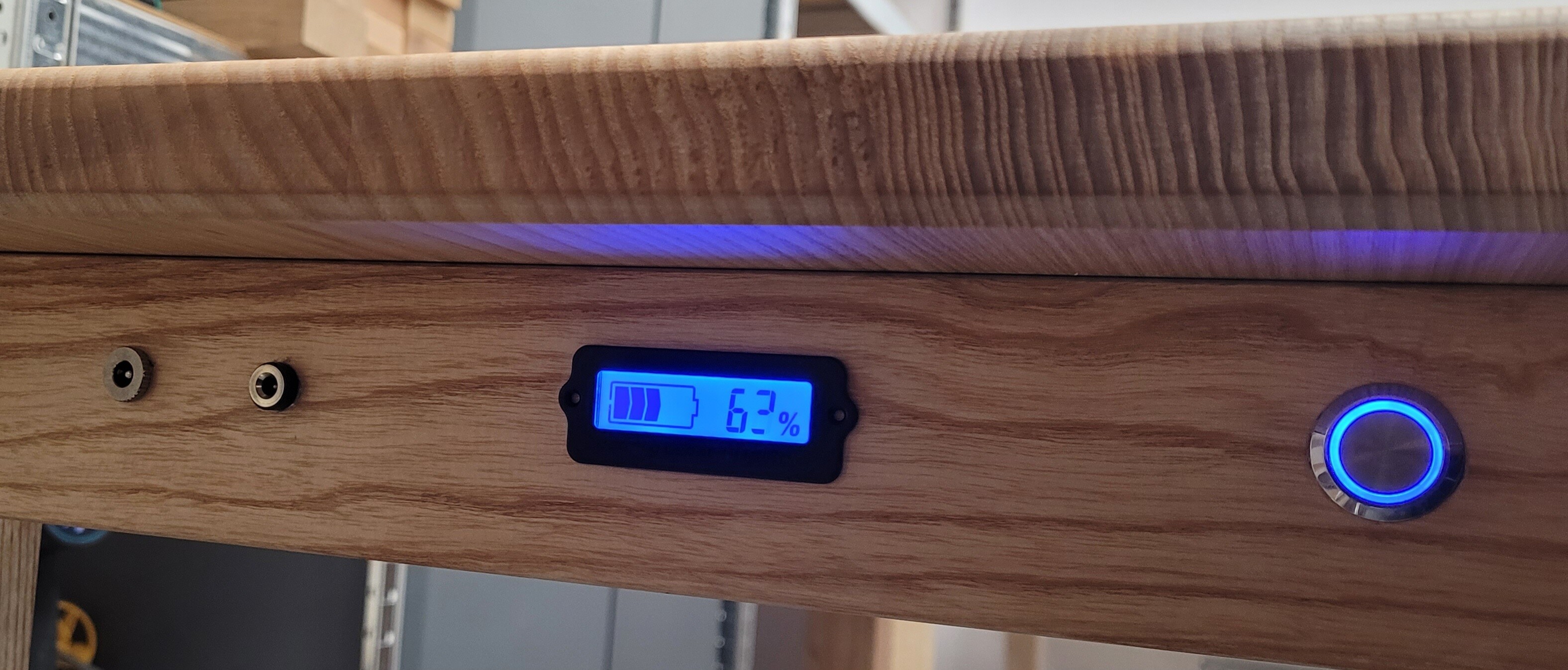 W stole zastosowaliśmy czujniki pojemnościowe oraz diody LED które rozświetlają żywicę epoksydową. Stolik wyposażony we wskaźnik poziomu naładowania akumulatora. Zasilanie zarówno z akumulatora jak i z sieci. Nasza firma dostarczyła czujniki oraz diody oraz pomogła w montażu całości.